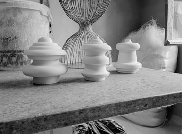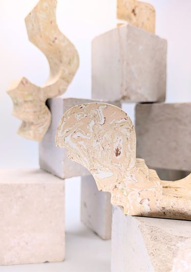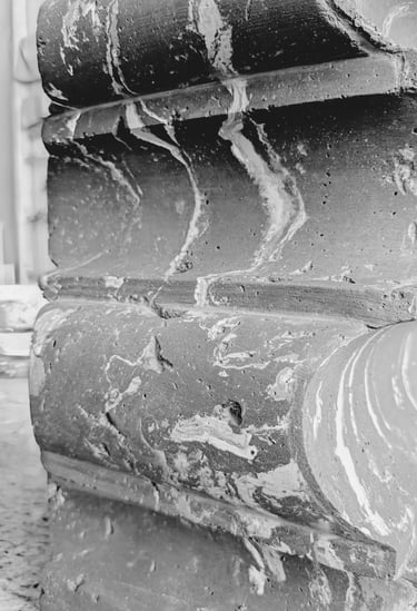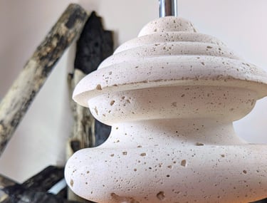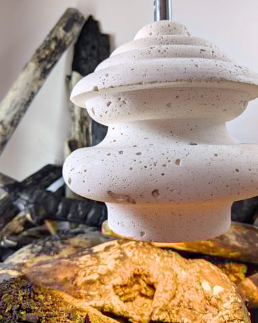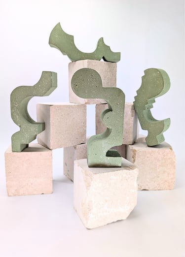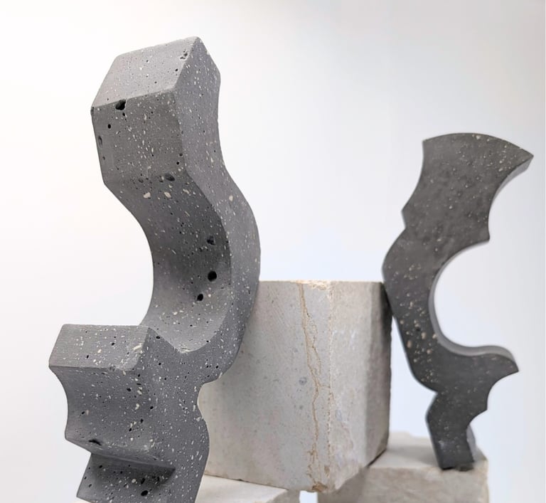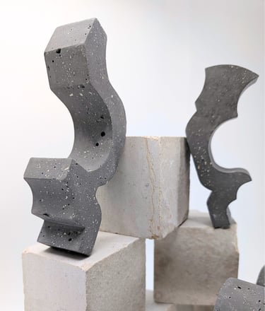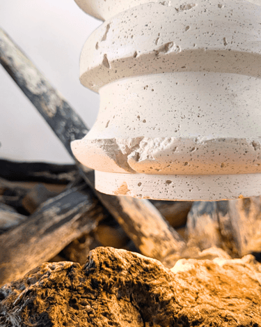 Handcrafted, these silent forms appear as relics: fragments of ancient—or future—architecture whose origin remains undetermined. Enigmatic vestiges, they inhabit space with restraint and invite contemplation.