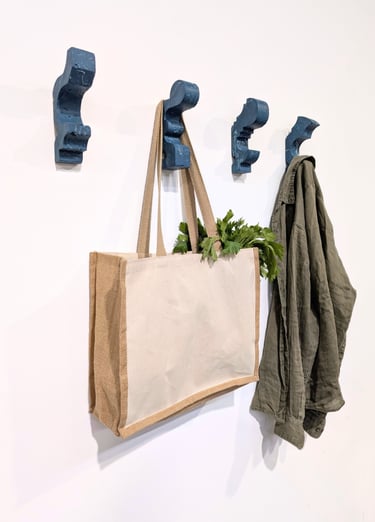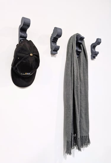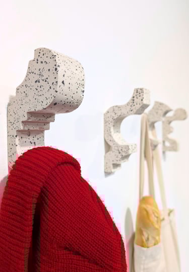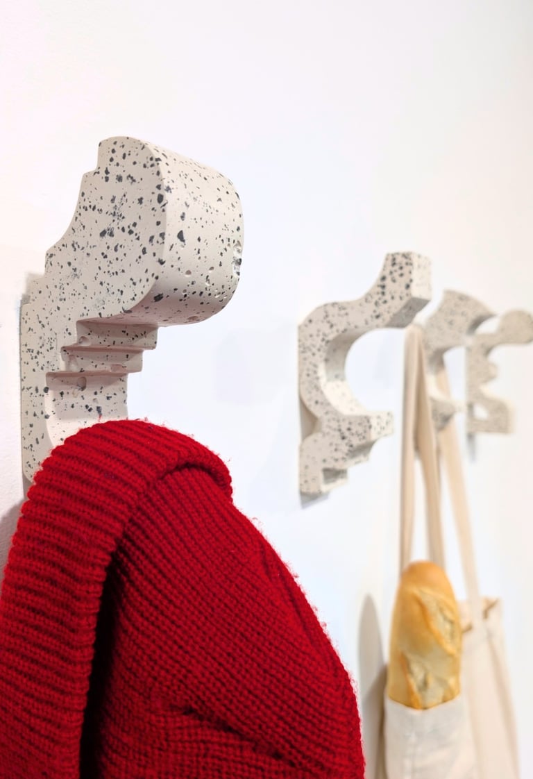 The Implant(s) series extends this reflection to the scale of the wall. Grafted onto the architecture, these coat hooks inhabit the wall with restraint, somewhere between decorative object and relic.